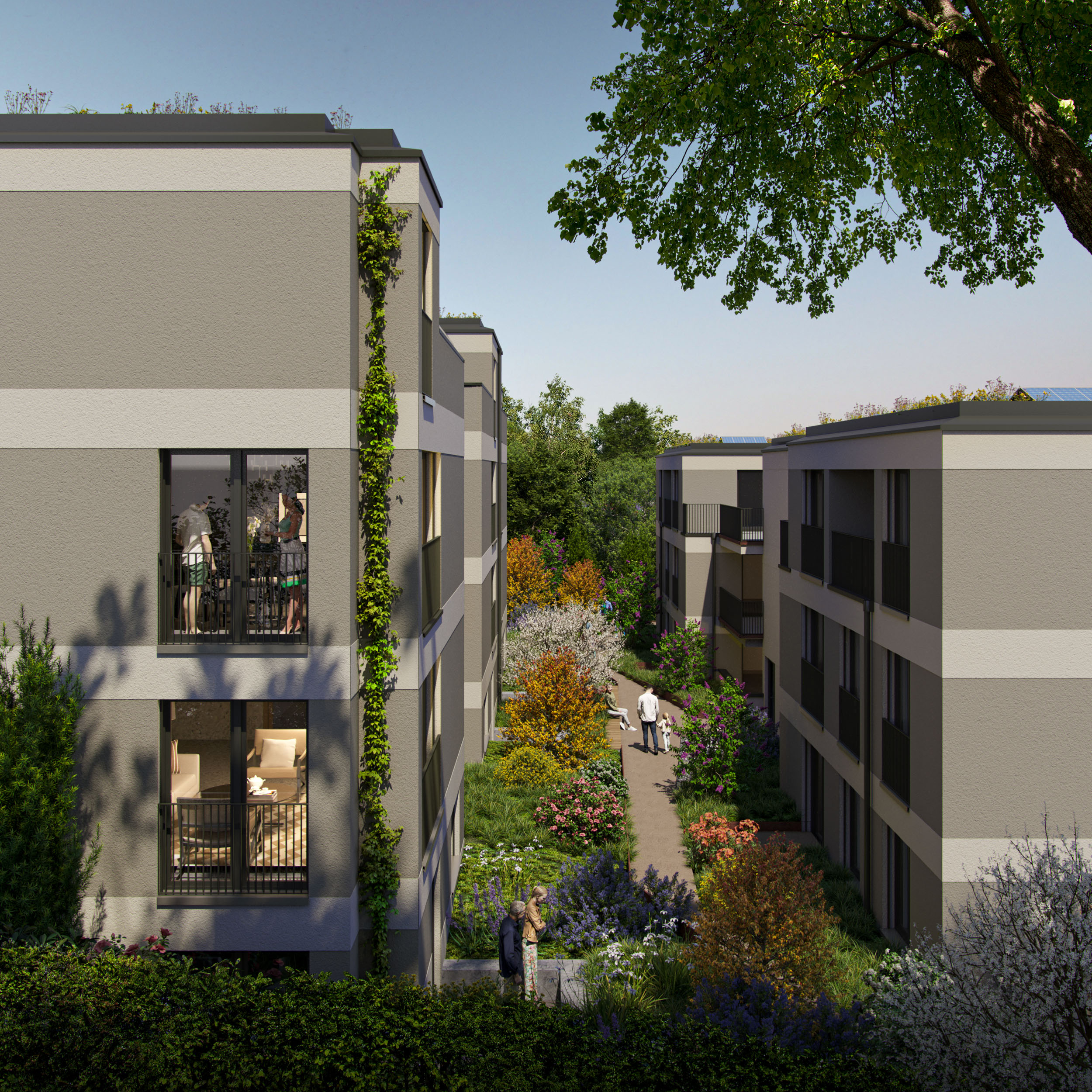 Am Fuss des Käferbergs gelegen, bietet das Wohnprojekt an der Wibichstrasse die perfekte Verbindung von Erholung im Grünen und urbanem Komfort.